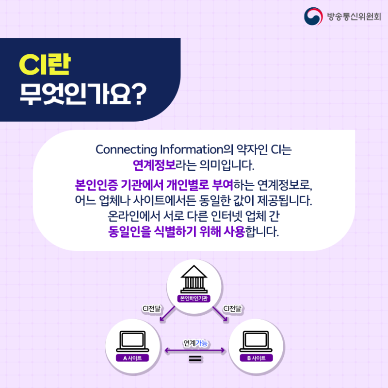 본인인증을 완료하면 연계정보(CI)를 받아요.