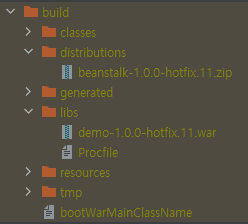 패키징된 WAR 파일과 zipBeanstalk 태스크에 의해 만들어지는 아카이브 파일에 프로젝트 버전이 포함됨을 확인할 수 있습니다.