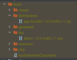 추가한 k8sbuild 태스크는 쿠버네티스 배포 환경 테스트를 위해 패키징된 애플리케이션 WAR 파일에 포함되는 프로젝트 버전을 생략하기 위해서 project.version을 빈 값으로 설정하도록 작성한게 화근이었습니다. 이 상태로 zipManually 태스크를 다시 한번 수행하면 어떻게 되는지 확인해봅시다.