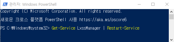 파일에 정의한 내용을 WSL에 반영하기 위해서는 도커 데스크탑을 종료하고 PowerShell을 관리자 권한으로 실행한 다음 LxssManager를 다시 실행해야합니다.
