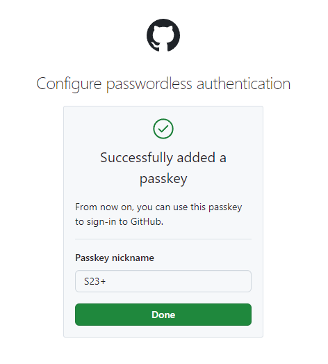 위 화면은 깃허브에서 패스키 등록 시 패스키에 대한 이름을 입력하도록 요구하는 단계입니다. 이와 같이 패스키 등록 시 사용자에게 등록하려는 인증 기기에 대한 이름을 입력하도록 요구하거나 사용자에게 기기에 대한 이름을 별도로 입력하지 않고 Authenticator 1 과 같이 현재 등록된 기기의 수를 토대로 기본값을 제공하고 사용자가 별도로 이름을 수정할 수 있도록 하는게 좋습니다.