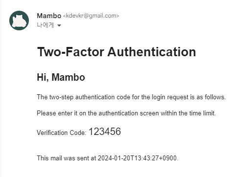 위 코드에서는 주석을 통해 2fa.html 파일에 2차 인증을 위한 이메일 템플릿이 어떻게 작성되었는지를 보여줍니다.