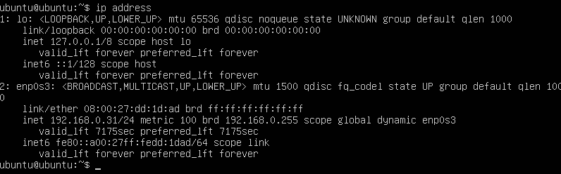 Memory usage: 22% IPv4 address for enp0s3: 192.168.0.31